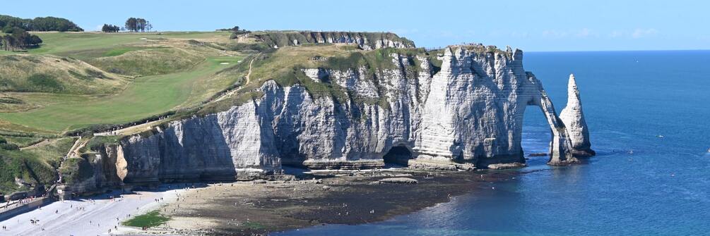 Cette balade à Étretat a l'avantage de vous faire découvrir les Falaises d'Amont et d'Aval et d'offrir d'incroyables vues sur celles-ci. Tout en s'éloignant un peu du point de vue phare des falaises, vous pourrez savourer cette balade, un peu comme si vous étiez seul au monde.